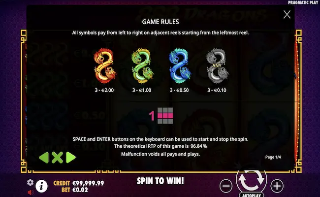 | Features | Matching Dragons, Bonus symbols, RTP range |